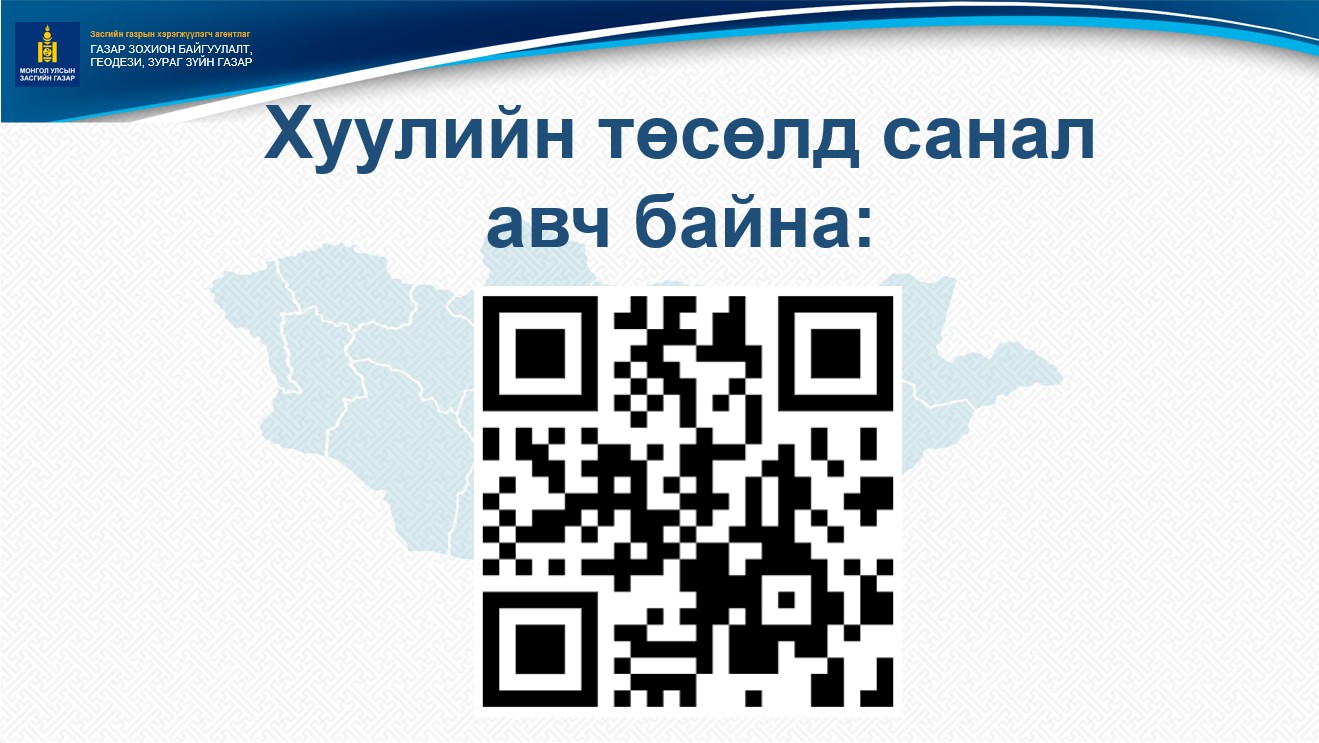 Газар зохион байгуулалт, геодези зураг зүйн газраас дараах хуулийн төсөлд цахимаар санал авч байна: